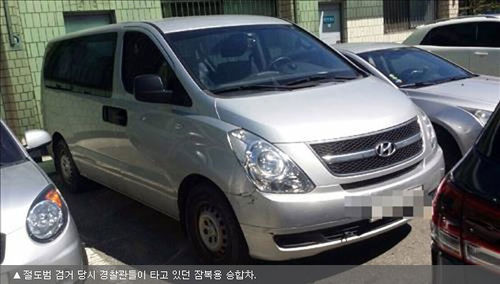 절도범이 털려던 승합차는 경찰 마크가 부착되지 않은 일명 '잠복용 미노출 경찰차량'이었습니다.