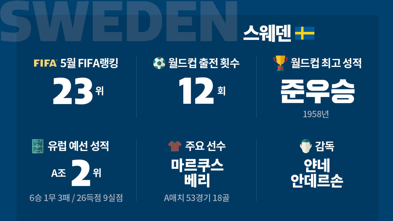 스웨덴 팬들은 이 동화가 '해피엔딩'이길 바랍니다. 라이프치히에서 활약하는 분데스리가 도움왕 출신 포르스베리, 알 아인에서 연일 골 행진을 펼치고 있는 베리 등 특정한 선수가 주인공이 되기보단 팀으로서 아름답게 승리하길 꿈꾸겠죠.