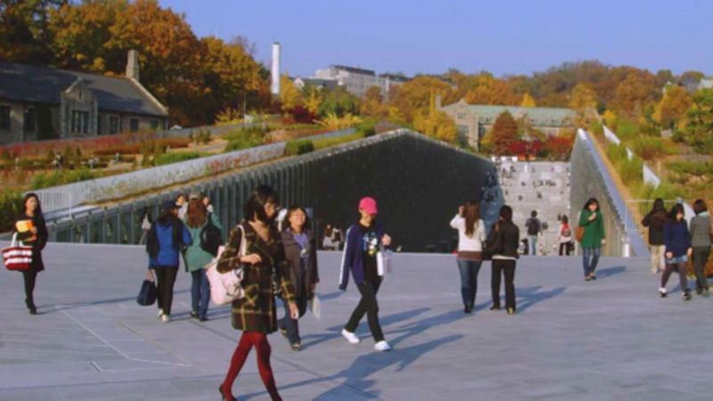 그러나 페로 건축의 첫 번째 원칙은 주변과의 조화. 그는 ‘한국 주변 환경과 조화되는 한국식 정원’을 시도했습니다. 주차장 때문에 없어진 공간을 한국의 시골 공원과 같은 풍경으로 만드는 대신 부족한 공간 확보를 위해 건물은 지하 6층까지 만들어야 했습니다. 건물 대부분이 지하에 자리 잡고 있지만 양쪽 유리벽을 통해 채광 문제까지 멋지게 해결하면서 기능적인 면과 미적인 면을 모두 살릴 수 있었습니다. 덕분에 이화여대를 중국 관광객들의 필수 방문 코스로 거듭나게 하는 결정적 역할을 했다는 평가를 받고 있습니다.