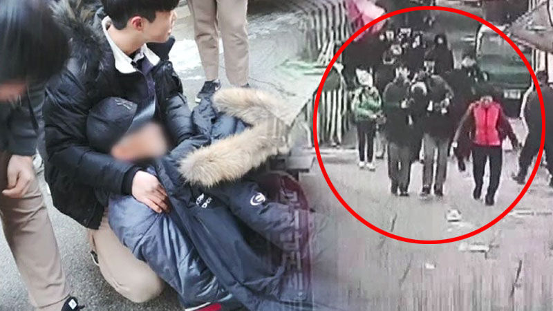 이때, 등교를 하던 중학생들이 노인에게 다가왔습니다.