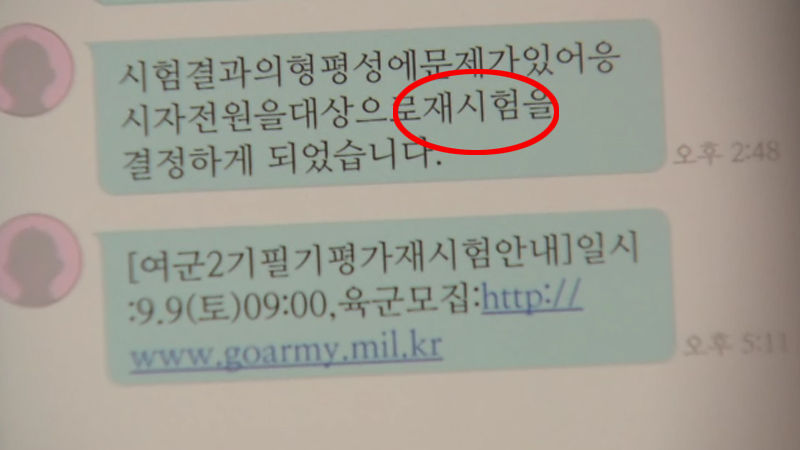 지난 19일 육군 부사관 선발 필기시험을 치른 윤 모 씨는 어제(24일) 군으로부터 문자 한 통을 받았습니다.