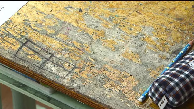 학생들과 학부모들 사이에서 '곰보 책상'이라 불리는 노후 책걸상이 전국 학교 책걸상의 42%에 달하는 것으로 조사됐습니다. 국회 교육문화체육관광위원회 소속 이상일 의원실(새누리당)이 전국 시도교육청에서 제출받은 자료에 따르면, 전국 초중고교 책걸상 1626만 세트의 42.5%에 해당하는 685만 세트가 내용연수 8년 이상이 넘어 교체 대상에 해당하는 노후 책걸상으로 집계됐습니다.