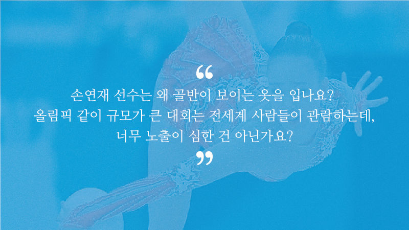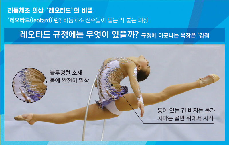 사실 손연재 선수의 의상은 엄격한 규정에 맞춰 제작된 의상입니다. 노출 정도도 정확히 지켜진 의상이죠. 리듬체조 규정에 따르면, 레오타드는 불투명 소재여야 합니다. 신체 동작과 자세를 정확히 표현했는지 심판들이 판단할 수 있도록 몸에 완전히 밀착돼야 하죠.