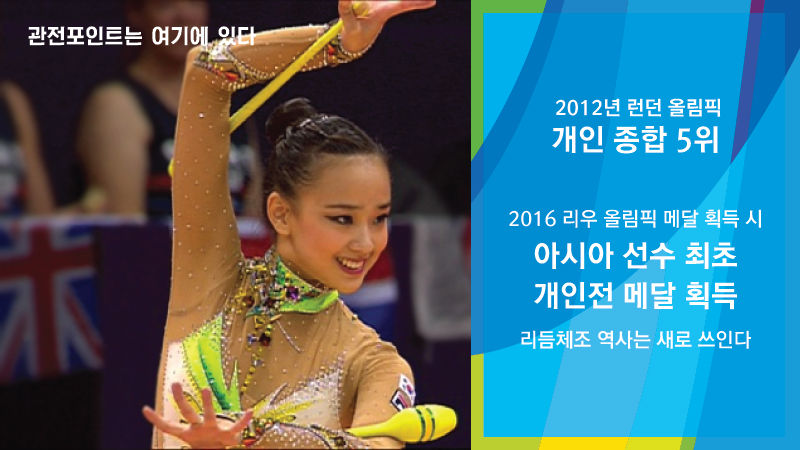 리듬체조 메달은 유럽 선수들의 전유물이었습니다. 긴 팔과 다리로 유연성을 표현하는 종목이기 때문에 아시아 선수들에게 상대적으로 불리했죠. 아시아 선수가 개인전에서 메달을 딴 사례는 한 번도 없었습니다.