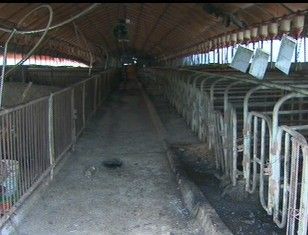 좁은 우리에서 밥 주는 주인을 마냥 기다리다 굶어죽었을 돼지들.