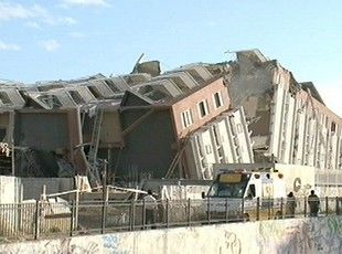지은 지 1년도 안 된 15층 아파트가 뒤로 넘어진 붕괴 현장입니다.