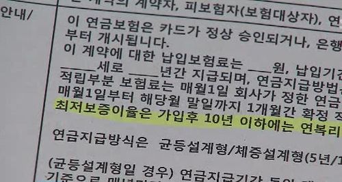 [A 카드사 보험판매원 : 소득공제도 받으시면서 은행권보다 월등히 높은 5.2% 금리를 복리이자 아시죠? 저축하시는 원금의 2~3배 넘는 이자가 고객님 앞으로 확보되는 내용입니다.]