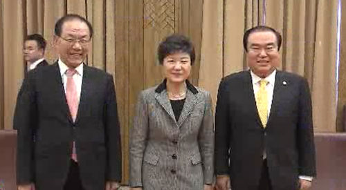 박근혜 대통령 당선인이 당선 이후 처음으로 여야 대표를 한 자리에서 만났습니다.
