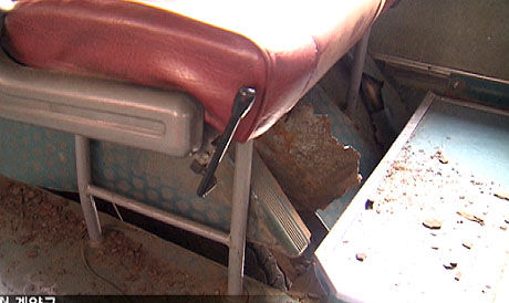 버스 뒷좌석 바닥 철판이 종잇장 찢기듯 부서졌습니다.