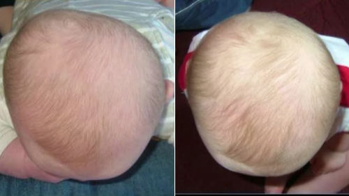 돌 되기 전에 갓난아기에게 교정 모자를 씌워서 머리 모양을 잡아주는 겁니다.