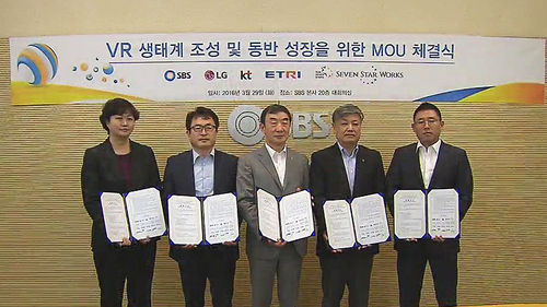 SBS는 LG전자, KT, ETRI, 중국의 양광칠성 미디어그룹 SSW와 VR 콘텐츠 개발과 플랫폼 구축을 위한 양해각서를 체결했습니다.