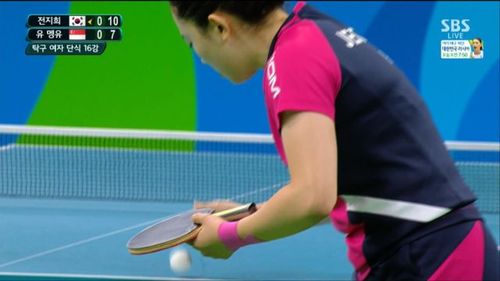 리우올림픽 탁구 여자 단식 4라운드 경기에서 전지희 선수가 싱가포르의 맹유 유 선수를 상대로 경기를 펼치고 있습니다. (SBS 뉴미디어부)