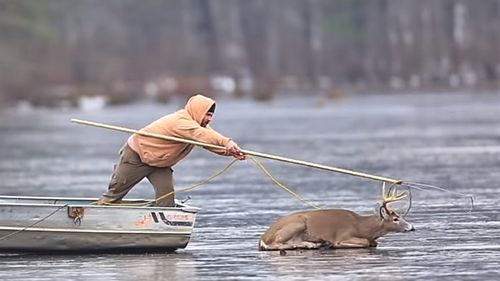 한 사냥꾼이 얼어붙은 호수에 고립된 사슴을 구해주는 영상이 훈훈함을 전하고 있습니다.