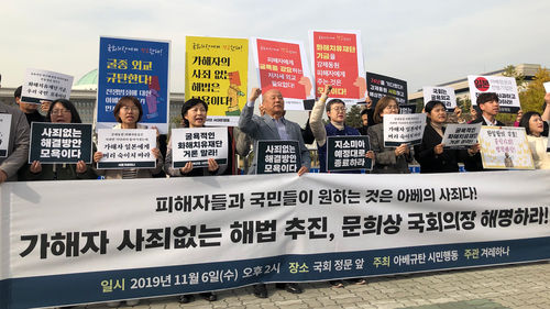 정의기억연대는 이날 오후 입장문을 내고 "문 의장의 기금안 관련 발언을 강력히 규탄하며 즉각적인 사과를 요구한다"고 밝혔습니다.