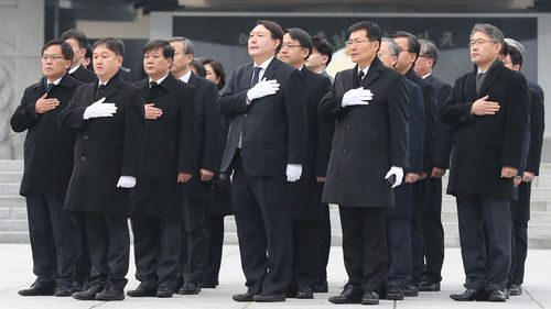 윤석열 검찰총장이 새해 첫 근무일인 2일 오전 서울 동작구 국립서울현충원을 방문해 현충탑에 분향하고 있다.