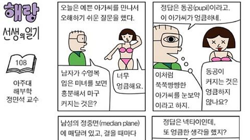 '부적절한 내용이 다수 포함됐다'는 누리꾼들의 지적이 이어진 해당 만화는 정 교수가 아주대학교 공식 홈페이지 '아주스토리' 등에 연재한 '해랑 선생의 일기' 일부입니다.