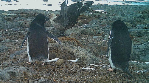 다만 아델리펭귄이 남극도둑갈매기 둥지를 공격하는 일은 이례적입니다.