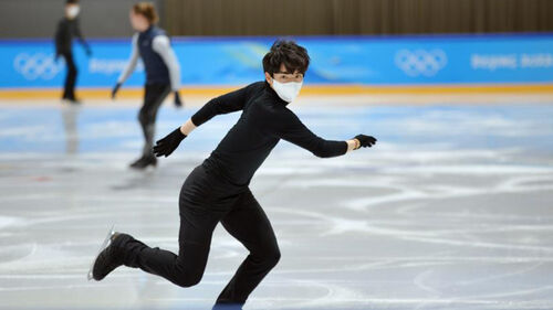 차준환은 중국 베이징 캐피털 실내경기장 인근 피겨스케이팅 훈련장에서 대표팀 동료 이시형과 함께 약 35분간 몸을 풀었습니다.