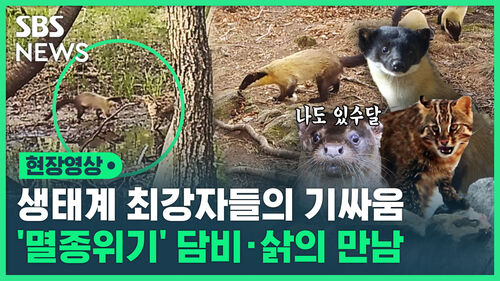 국내 생태계 최상위 포식자로 알려진 담비와 삵이 만나 미묘한 신경전을 벌이는 모습이 포착됐습니다. 그 밖에도 사냥하는 담비, 젖 물리는 어미 삵, 장난치며 뒹구는 수달 가족, 흰목물떼새의 짝짓기부터 부화까지의 과정 등 멸종위기 야생생물의 희귀 순간이 담겼는데요. 국립공원공단이 지난해 4월부터 올해 8월까지 국내 국립공원 곳곳에 설치된 무인관찰카메라 영상 중 일부를 공개했습니다.