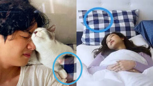 In the leaked photo, a man (who is believed to be V) is seen lying in bed, snuggling with a cat.