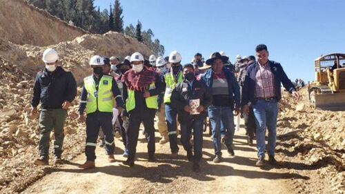 ▲ 지난해 8월 볼리비아 수크레∼얌파라에스 고속도로 건설공사 현장 둘러보는 관계자들