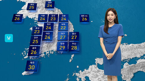 낮 기온 24도에 그치면서 어제보다 6도가량이나 낮아지겠습니다.
