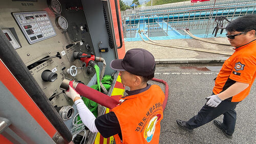 그러나 수압을 최대로 끌어올려 지름 65㎜ 호스를 7∼8㎏/㎠ 압력으로 분사하면 소방관들도 버티기 힘들 정도로 수압이 강해 밸브를 여는 직원과 호흡이 잘 맞지 않는 경우 넘어져서 다칠 위험이 컸습니다.