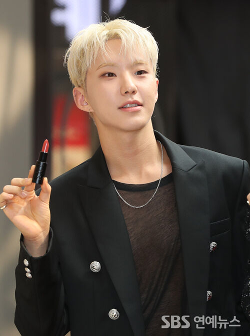 SEVENTEEN's Hoshi hit a beauty brand photocall at Lotte Department Store’s main branch in central Seoul on August 23, striking playful poses for the cameras and serving a “perfect-for-Carats” lip moment.