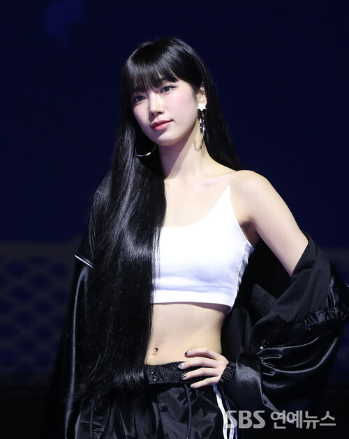 KAZUHA of LE SSERAFIM turned heads with sleek, waist-length hair as she posed during the media showcase for the group’s fourth mini-album, 'CRAZY,' at Yes24 Live Hall in Seoul’s Gwangjin District on Aug. 29.