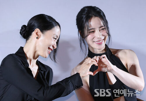 Jeon Do-yeon (left) and Lim Ji-yeon took the stage at a morning production briefing for their film “Revolver” at Megabox COEX in Seoul’s Gangnam District, sharing laughs and conversation with the press.