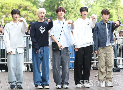 TWS arrived at KBS in Yeouido, Seoul, on the morning of June 7, flashing bright smiles and striking playful poses as they headed into the studio for a music show rehearsal.