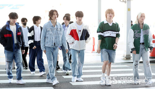 Stray Kids were spotted at Incheon International Airport on the morning of May 3, jetting off to New York for a U.S. schedule ― and turning heads with bright, spring-ready airport style.