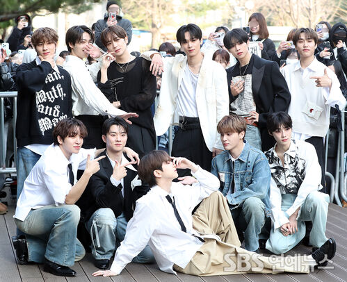 THE BOYZ turned the KBS entrance in Seoul’s Yeouido district into a mini photoshoot on the morning of March 22, striking playful poses as they headed in for a music show rehearsal.