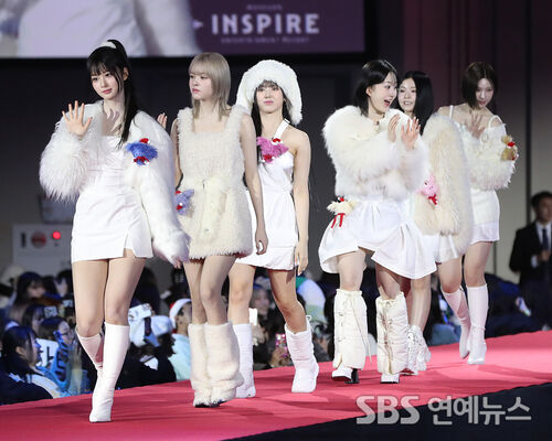 NMIXX hit the red carpet at the 2023 SBS Music Awards at Inspire Arena in Incheon on Dec. 25, serving runway-ready winter goddess vibes as they posed for photos.