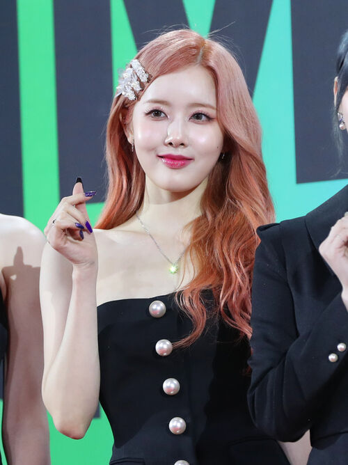 Sieun of STAYC hit the red carpet at the 2023 Melon Music Awards on Dec. 2 at Inspire Arena in Incheon, South Korea, flashing a sweet hand-heart for the cameras.