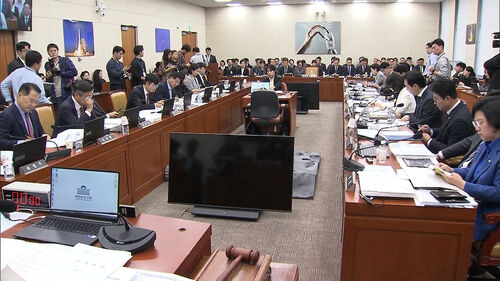 여야의 격한 공방으로 불과 한 시간도 안 돼 두 곳의 국정감사장이 오전 한때 멈춰 섰습니다.
