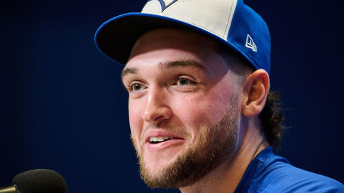 ▲ 기자회견에서 WS 1차전 선발 등판을 이야기하는 토론토 트레이 예새비지
