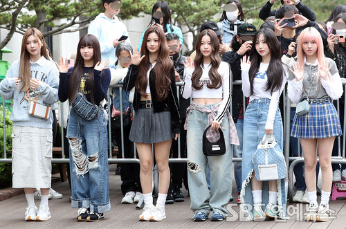 NMIXX arrived at KBS in Yeouido, Seoul, on the morning of April 14, striking playful poses as they headed into the studio for a music show rehearsal.