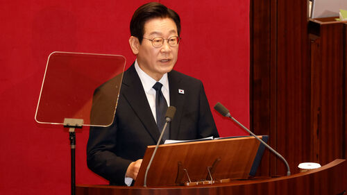 ▲ 이재명 대통령이 4일 서울 여의도 국회 본회의장에서 내년도 정부 예산안에 대한 시정연설을 하고 있다.
