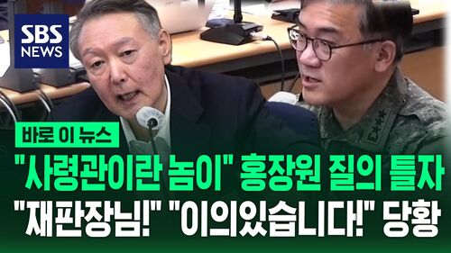 오늘 오후 윤석열 전 대통령에 대한 내란 우두머리 재판에서 윤 전 대통령이 지난 20일 홍장원 전 국정원 1차장에게 한 신문 장면이 등장했습니다. 검찰이 당시 재판 영상을 재생하며 증인으로 출석한 여인형 방첩사령관에게 질문하려하자, 윤 전 대통령 측은 당황한 듯 이의있다고 외쳤고 윤 전 대통령도 "해당 장면만 발췌해선 안된다"고 반발하고 나섰습니다. 어떤 내용인지, 현장 전해드립니다.