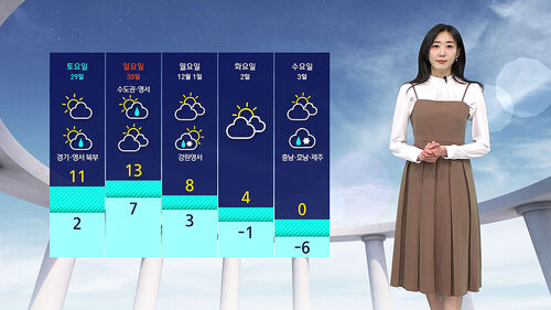 아침 기온 서울이 영하 1도, 춘천이 영하 4도까지 떨어지겠고 낮 기온도 서울이 7도에 그치겠습니다.