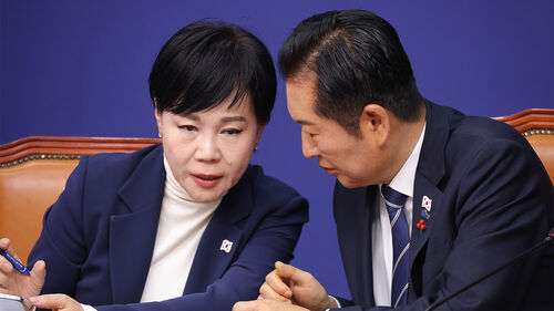 ▲ 더불어민주당 정청래 대표와 전현희 최고위원이 1일 서울 여의도 국회에서 열린 최고위원회의에서 대화하고 있다.