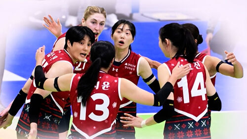 여자 배구 현대건설이 연말 분위기가 물씬 나는 특별한 유니폼을 입고 기분 좋은 승리와 함께 2위로 도약했습니다.