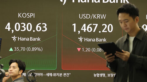▲ 3일 서울 중구 하나은행 딜링룸 현황판에 코스피 지수 등이 표시되고 있다. 이날 코스피는 상승 출발해 4,000선을 회복했다.