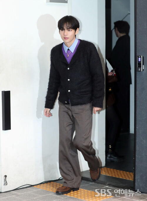 V of BTS turned heads at Celine's brand event in Seoul's Cheongdam neighborhood on the afternoon of Dec. 17.