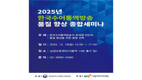 방송미디어통신위원회와 시청자미디어재단은 서울 삼경교육센터에서 한국 수어 통역 방송의 문제점을 진단하고 품질 향상 방안을 논의하는 세미나를 열었습니다.