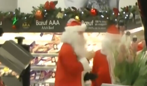 빨간 옷을 입고 새하얀 수염을 단 '산타'들이 늦은 밤 캐나다 몬트리올의 한 대형마트에서 수천 달러어치 식료품을 훔쳐 달아나는 일이 벌어졌습니다.