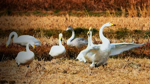 큰고니 떼 옆에서 사이좋게 어울려 놉니다.