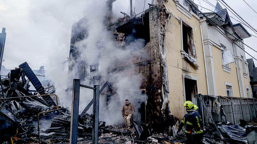▲ 지난 27일(현지시간) 우크라이나 수도 키이우의 한 민가 건물이 러시아군의 공습에 부서진 모습.