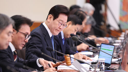 ▲ 이재명 대통령이 30일 청와대에서 의사봉을 두드리며 국무회의 개회를 선언하고 있다.